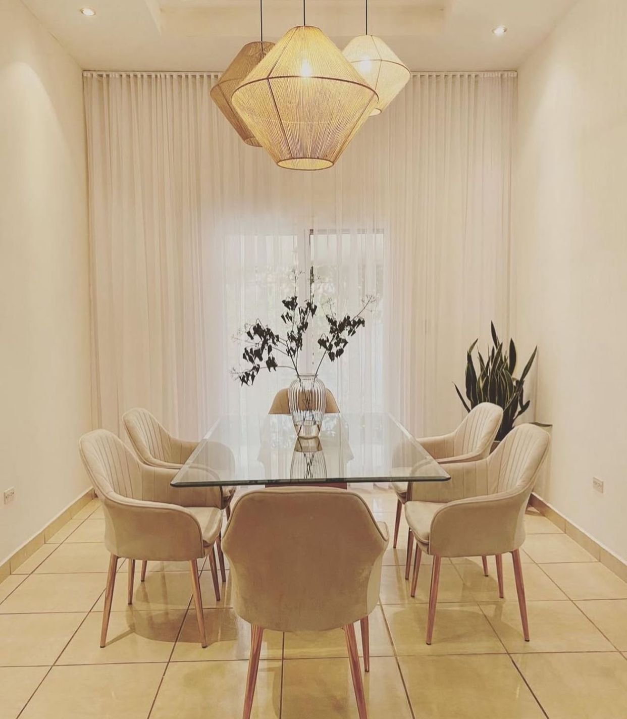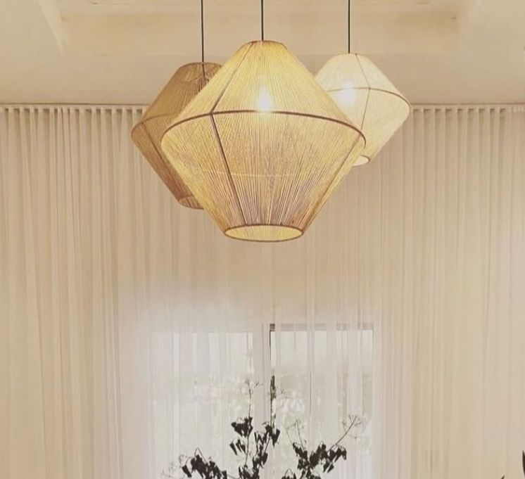 La lámpara Esencia combina la elegancia de la geometría con la calidez de los materiales naturales. Su diseño en forma de diamante, elaborado cuidadosamente con hilo de yute, aporta un equilibrio perfecto entre sofisticación y rusticidad. Al encenderse, proyecta delicados juegos de luz y sombra que llenan el espacio de armonía. Ideal para realzar interiores minimalistas, bohemios o contemporáneos, esta pieza única añade carácter y serenidad a comedores, salas o dormitorios, convirtiéndose en el punto focal de cualquier ambiente.