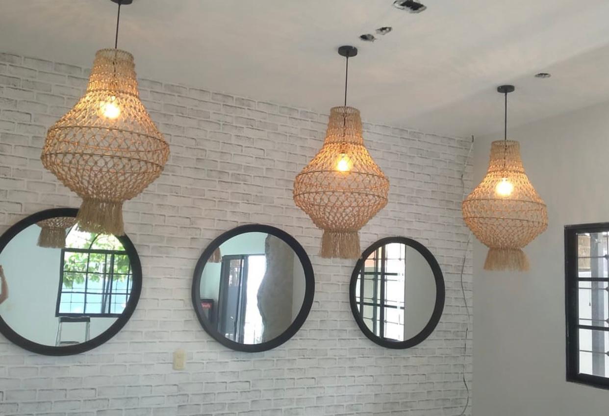 Su estructura tejida a mano imita la delicadeza y complejidad de los nidos, creando un juego de luces y sombras que aporta calidez y serenidad al espacio. La lámpara Oropéndola es ideal para ambientes bohemios, rústicos o tropicales, donde se busca integrar elementos naturales y auténticos que conecten con la tranquilidad del entorno.