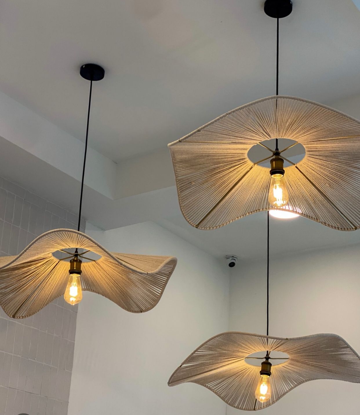 Nuestra Lampara ''Nube'' tiene un diseño orgánico y minimalista. Elaborada con hilo de algodón, creando una estructura ligera y etérea que difumina la luz de manera cálida y acogedora.